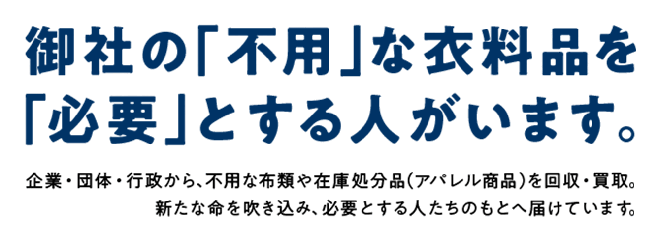 リユース・リサイクルで、“必要とする”人たちへお届けすることで、地球環境の保護だけでなく、途上国の経済発展にも貢献する企業を目指しています。
