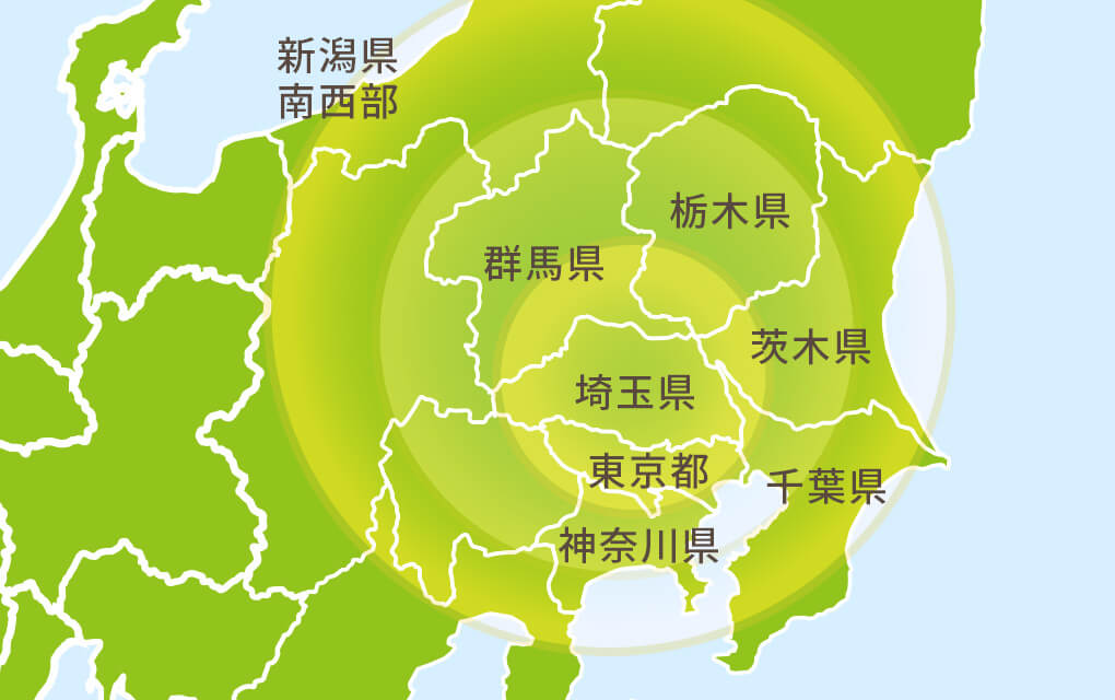 埼玉県、茨城県、栃木県、群馬県、千葉県、東京都、神奈川県、
